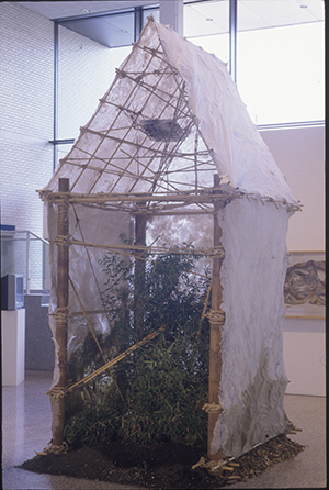 At the beginning of making textiles, I could not afford to buy paper, so I made it. Hand constructing is a passion and it has become part of the uniqueness of my wisdom and imagination. Like weaving, handmade paper is an ancient matrix of interconnected fibers. The plants and colors come from the earth whose ingredients are sun, soil, and rain. Canna, mulberry, cotton, tiger lily, kozo, iris, flax, abaca, and recycled blue jeans are some fibers that get transformed. I incorporate natural materials like konyaku (yam paste), seeds, beeswax, flower petals, and whole plants to convey my ideas.